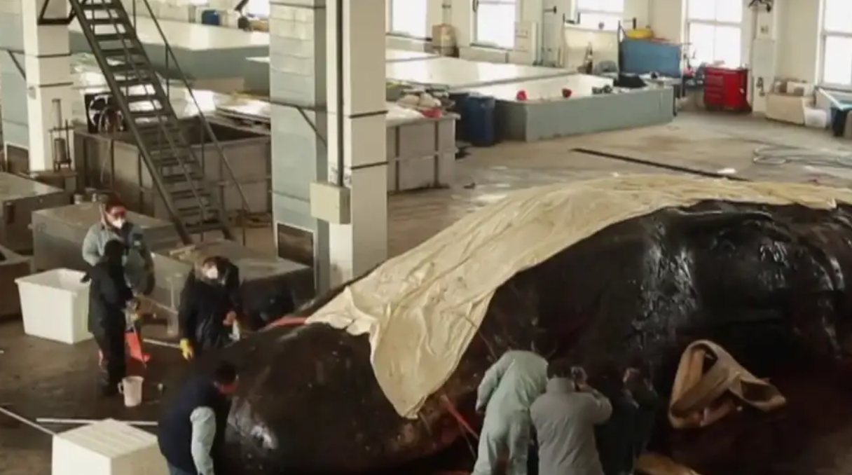 渤海首現(xiàn)擱淺抹香鯨:長近18米重近40噸 尸體將被塑化成標(biāo)本